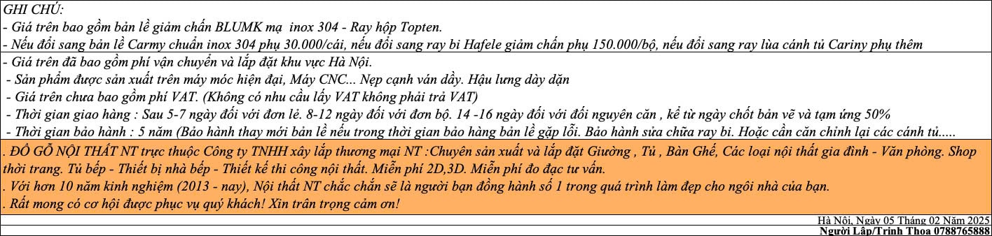 Bảng báo giá thiết kế nội thất tủ bếp :