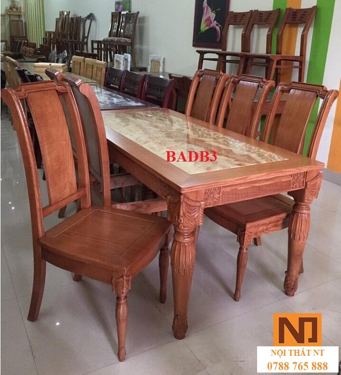 - Bộ bàn ăn gồm có 01 bàn và 6 ghế gỗ