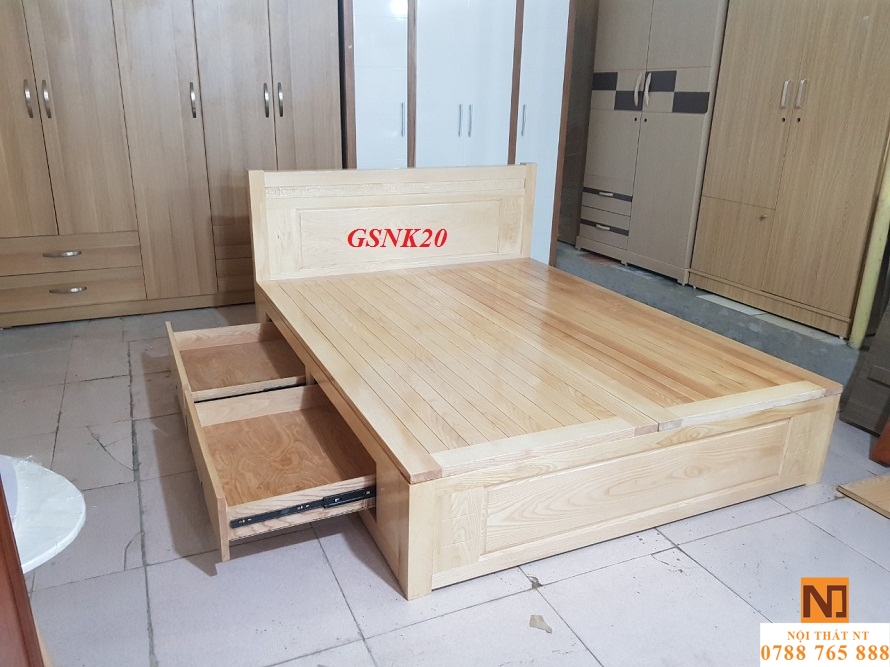 -1,8 x 2m (trong lòng) có ngăn kéo: 6.800.000đ (thang sồi, dát phản sồi như hình)