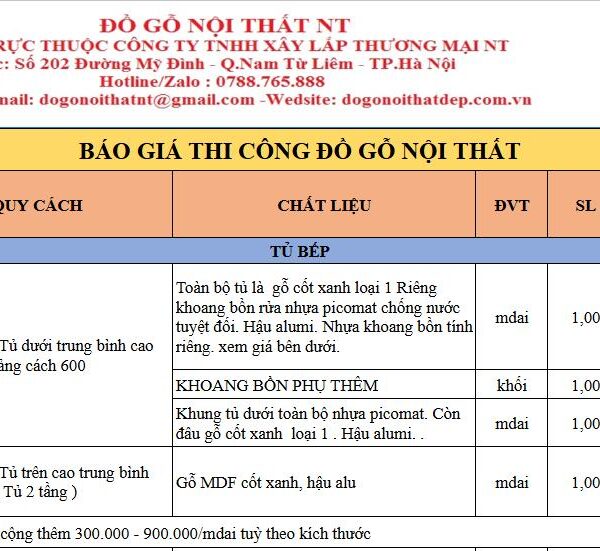 BÁO GIÁ TỦ BẾP