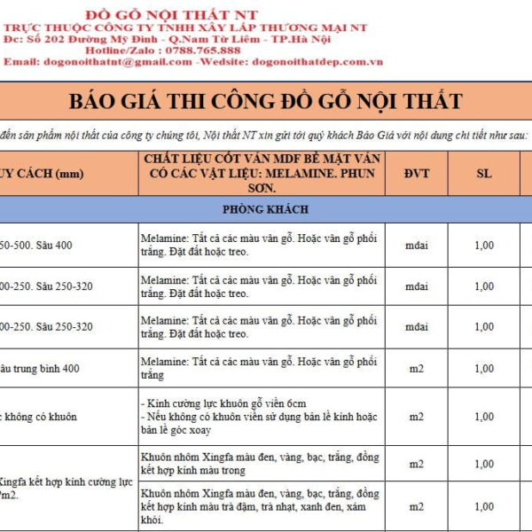 BÁO GIÁ THI CÔNG NỘI THẤT PHÒNG KHÁCH