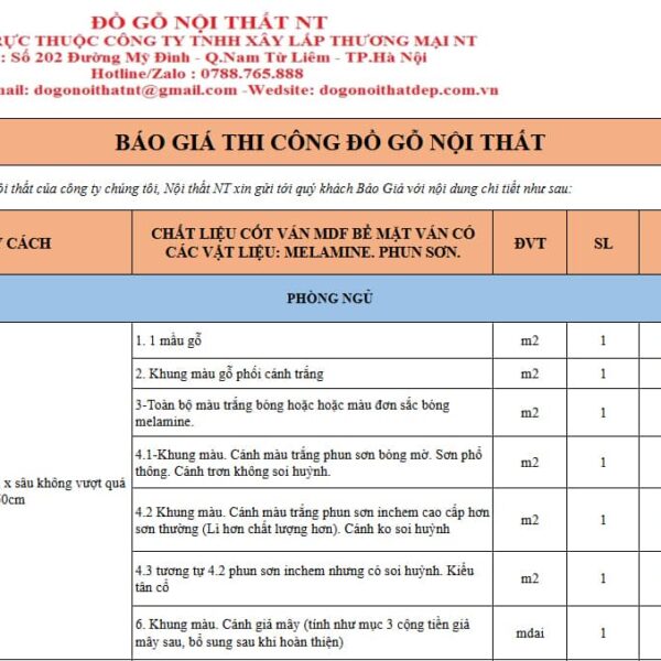 BÁO GIÁ THI CÔNG NỘI THẤT PHÒNG NGỦ