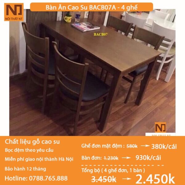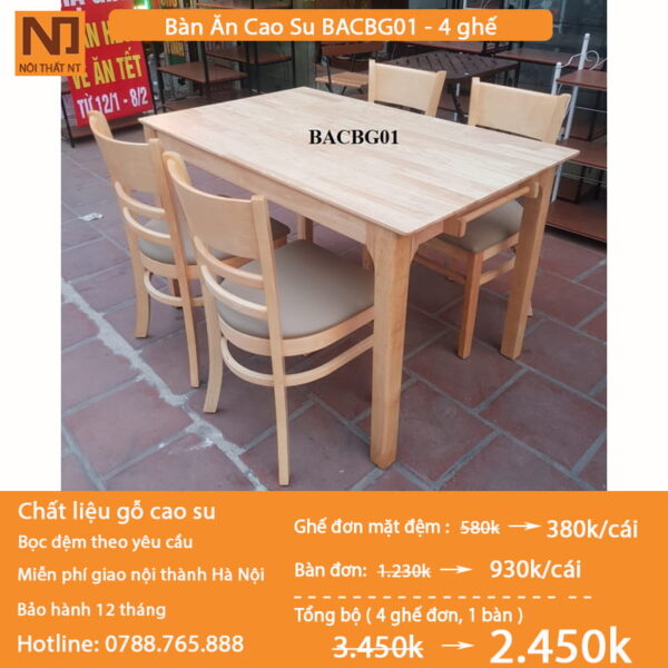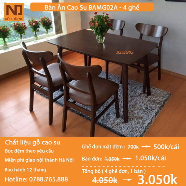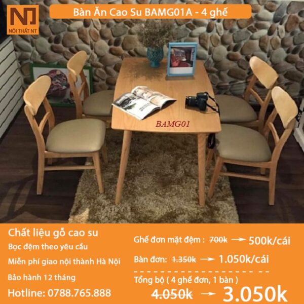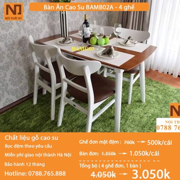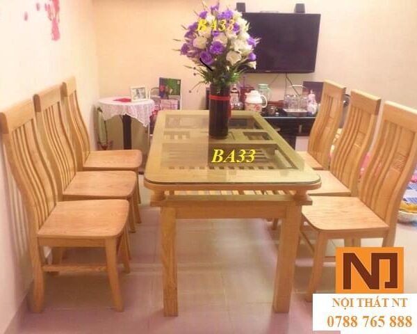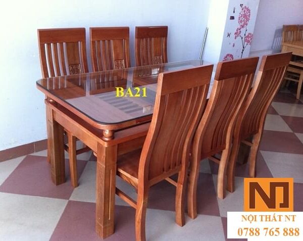 Hiện nay trên thị trường có rất nhiều mẫu mã bàn ghế ăn, để phù hợp với thị hiếu của người tiêu dùng chúng tôi đã luôn cố gắng phát huy khả năng của những người thợ. Vì vậy nếu bạn đang tìm địa chỉ bán bàn ghế ăn đẹp tại Hà Nội, hãy ghé Đồ gỗ nội thất NT để xem và chọn cho mình mẫu bàn ghế ăn đẹp, chất lượng. Cùng nhìn qua mẫu Bàn ăn BABG02 nhé.