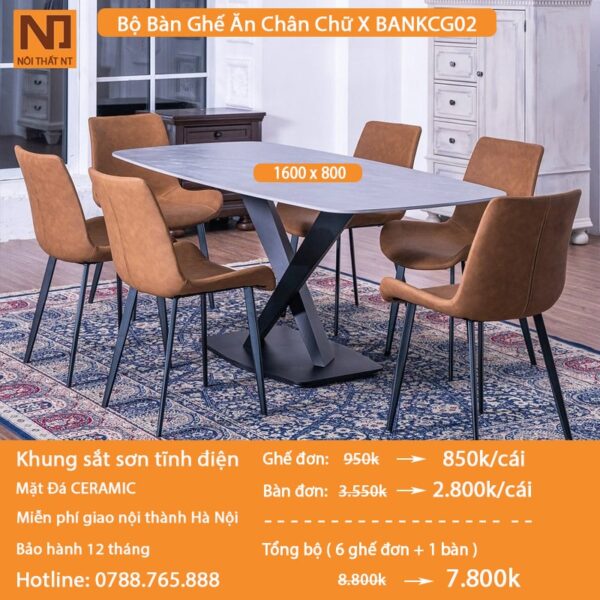 Kích thước : Bàn 160 x 80 x 75 cm – 6 ghế