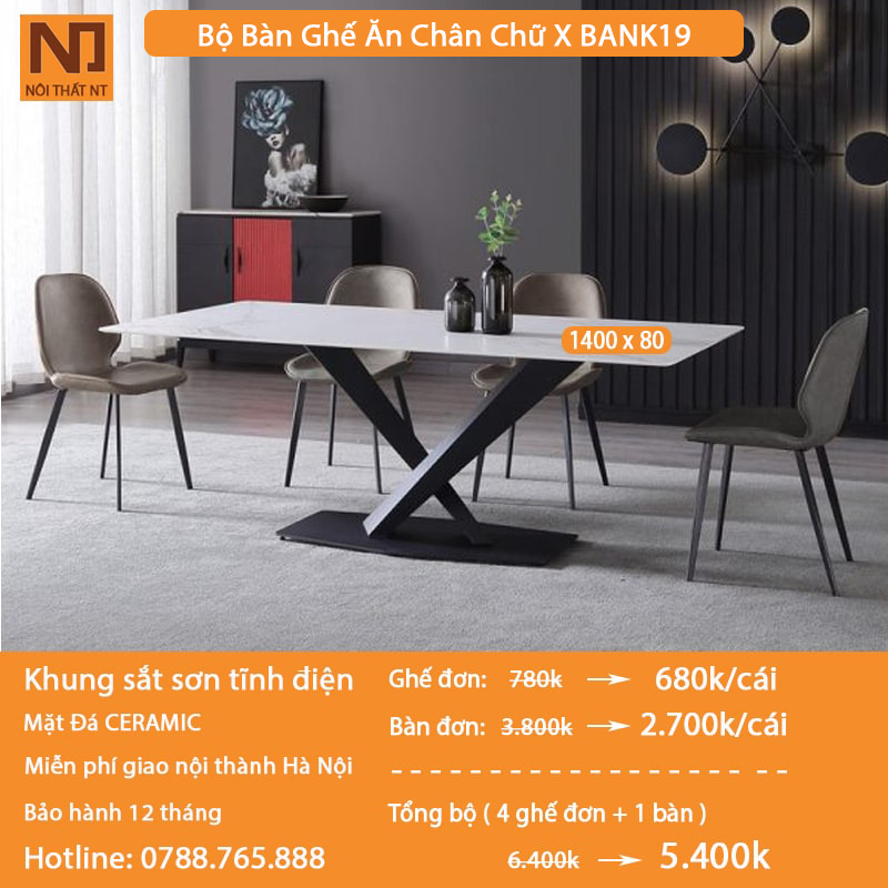 Bàn ghế ăn nhập khẩu, bàn chân chân Chữ X 4 ghế