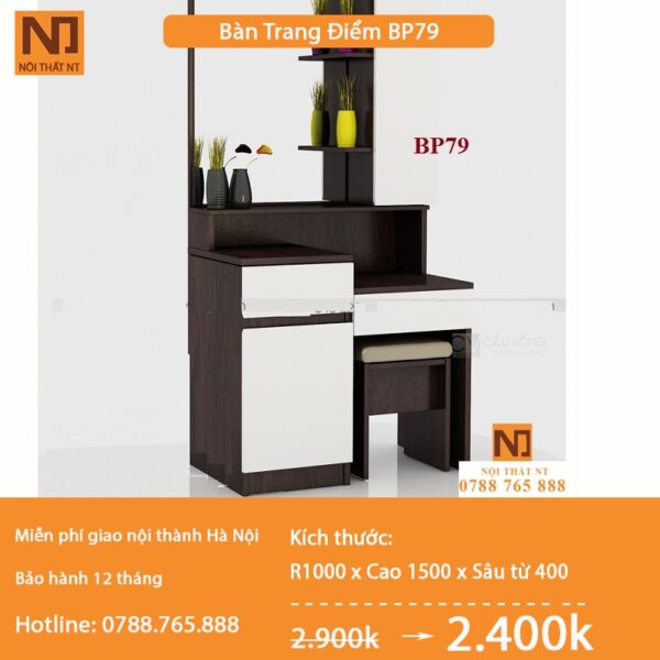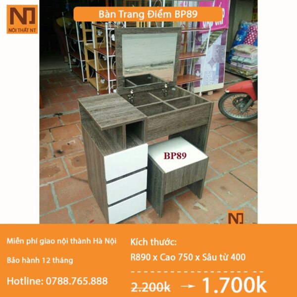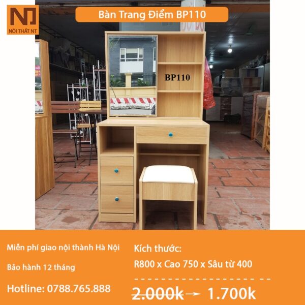 Đồ gỗ nội thất NT chuyên thiết kế, sản xuất và cung cấp các mẫu bàn trang điểm, bàn phấn đẹp, hiện đại, mẫu mã đa dạng, có thể đặt làm kích thước theo yêu cầu. Sau đây là mẫu bàn trang điểm BP01.