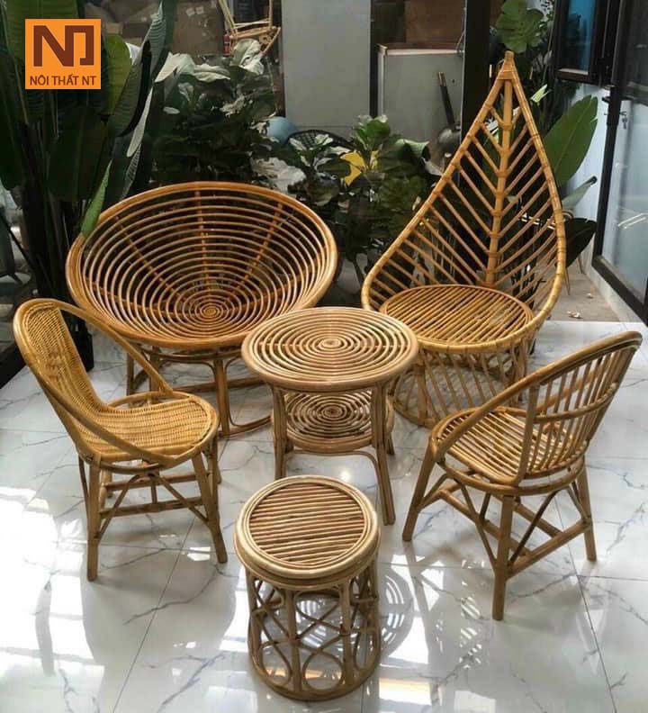 Bộ Ghế Ban Công BGBC10 gồm 2 ghế, 1 bàn, 1 đôn, 1 ghế papasan và 1 ghế lớn . Bộ bàn ghế này được sử dụng ở ban công, sân vườn, quán cafe không gian rộng rãi. Sản phẩm không chỉ dùng để ngồi nhâm nhi ly cafe mà chúng còn là dấu riêng cho phong cách của ngôi nhà, tạo sự thu hút đối với mọi người.