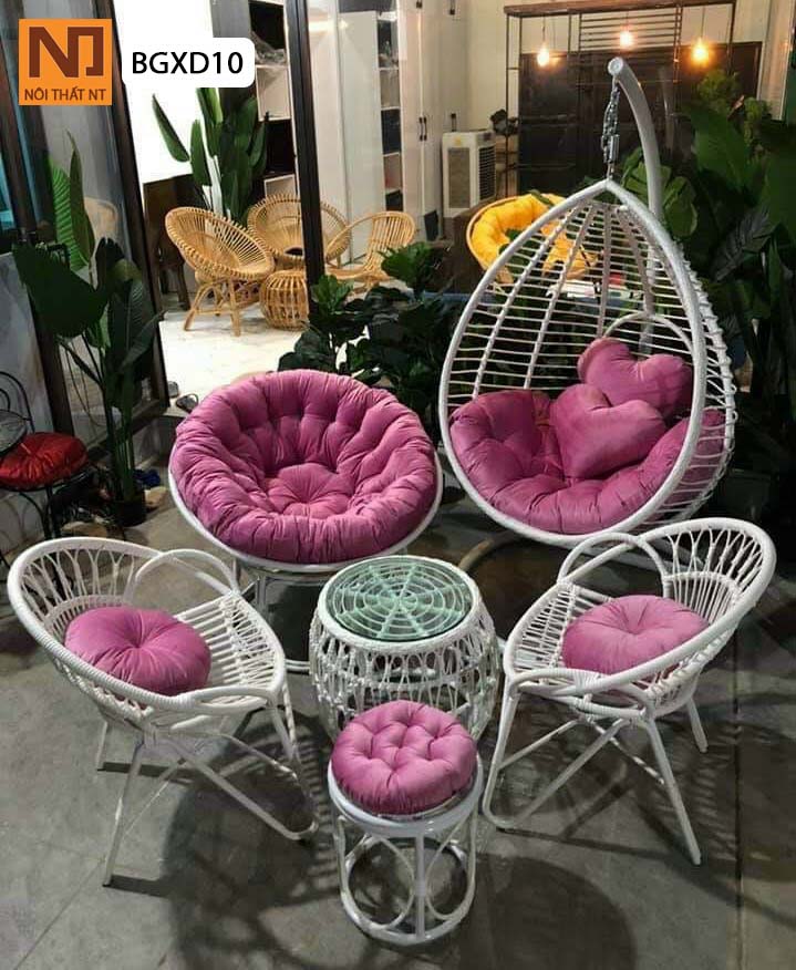 Tổng tất cả ( 2 ghế đơn 1 bàn 1 xích đu 1 ghế papasan đơn 1 đôn ) 8.800.000 đ giảm còn 7.800.000 đ tặng kèm đêm