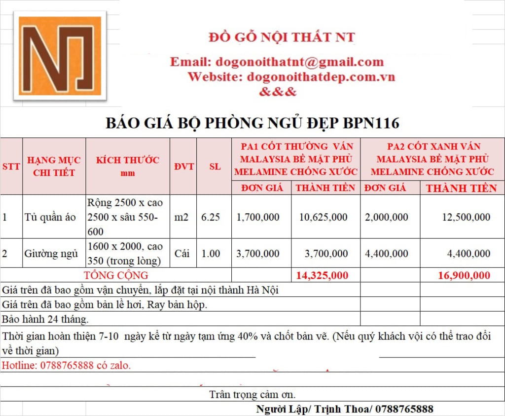 Bộ nội thất phòng ngủ BPN116