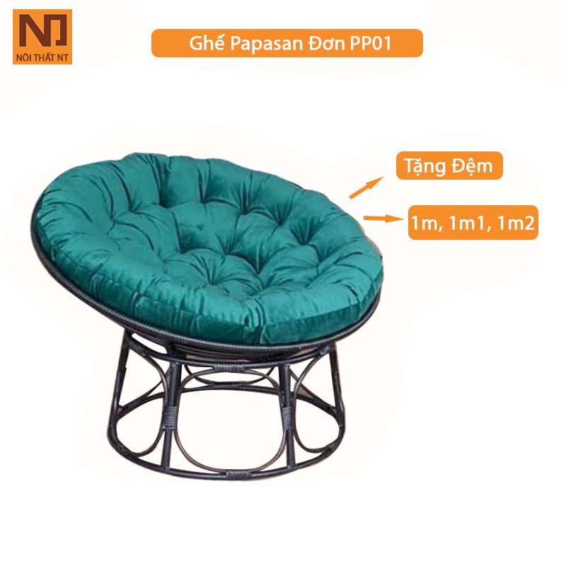 Ghế Papasan đơn PP01 nhỏ đọn, thanh lịch thích hợp đặt trong phòng ngủ, nơi mà bạn có đọc sách, thư giãn mang lại cảm giác thư thái sau những căng thẳng. Chiếc ghế papasan đơn phiên bản đặc biệt này đang được khách hàng ưa chuộng nhất trong suốt thời gian qua. Sản phẩm có nhiều kích thước để quý khách hàng có thể lựa chọn