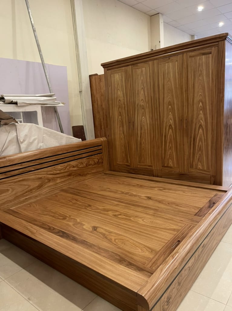 Mẫu giường ngủ gỗ hương xám vneeer HX04