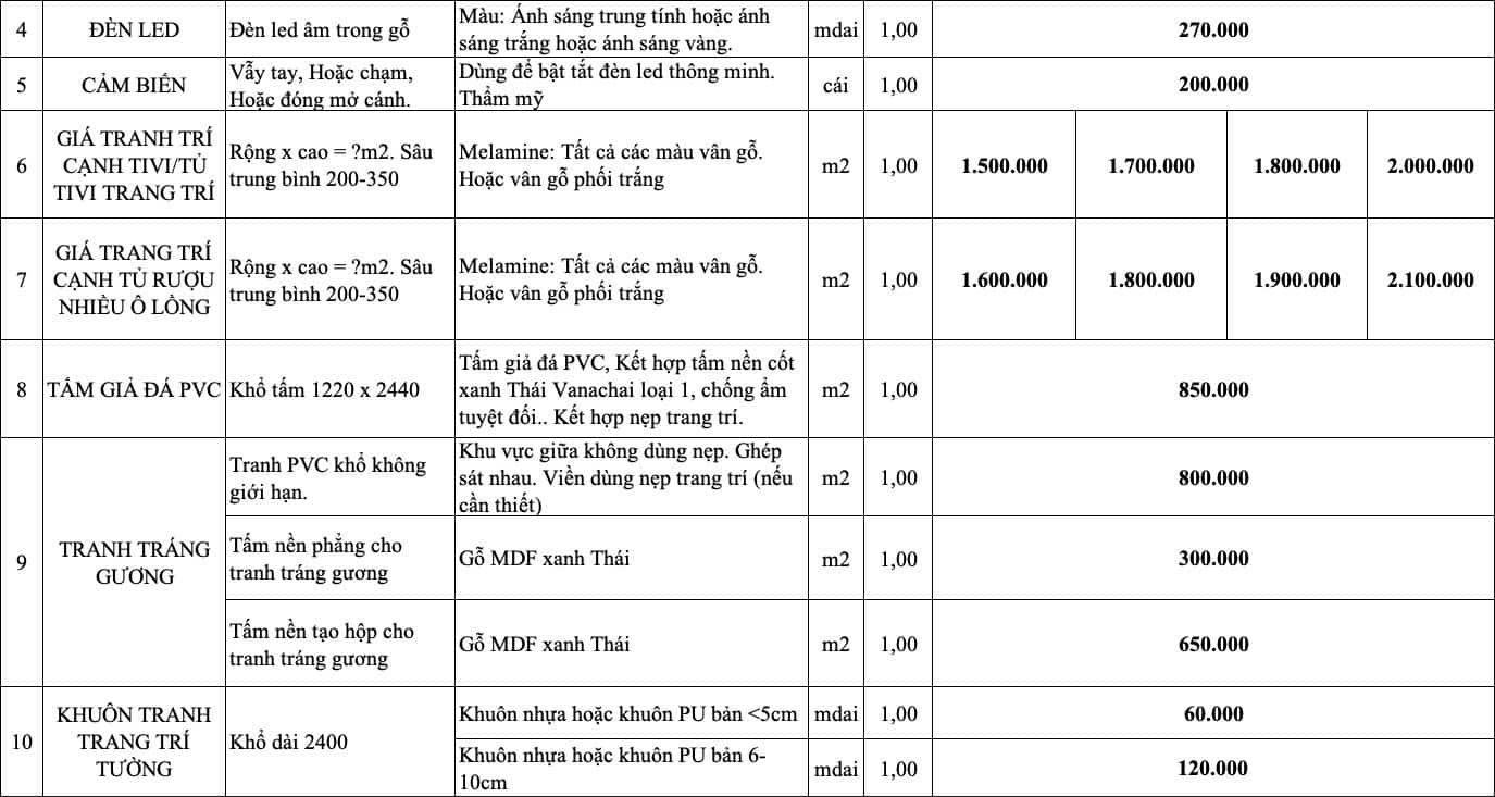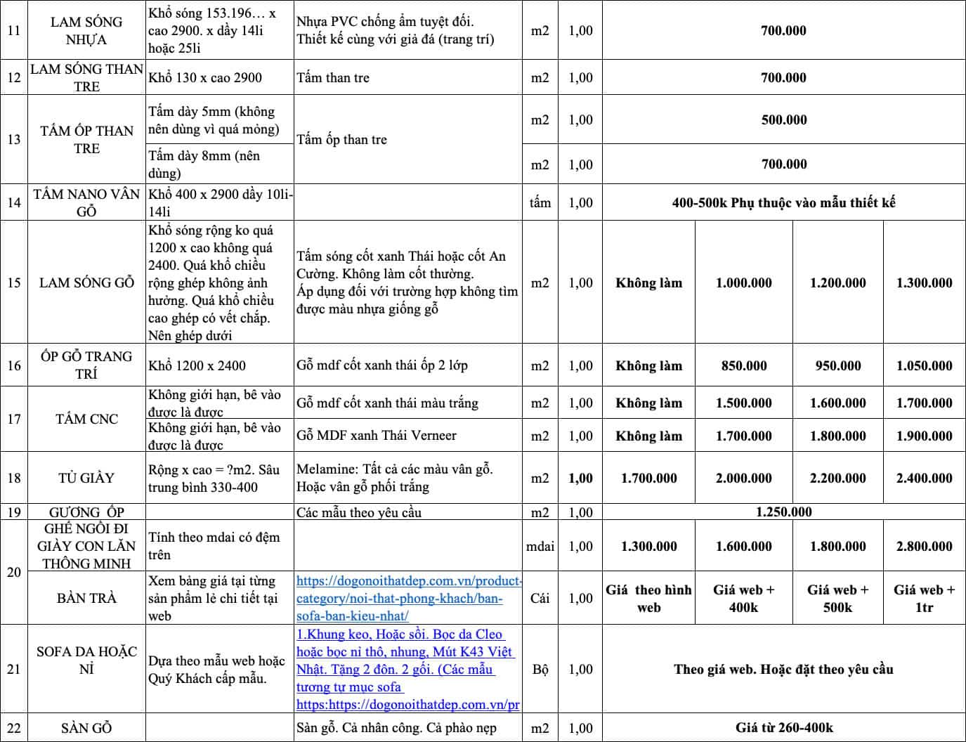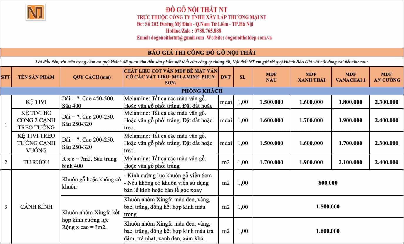 Bảng báo giá thiết kế nội thất tủ bếp :