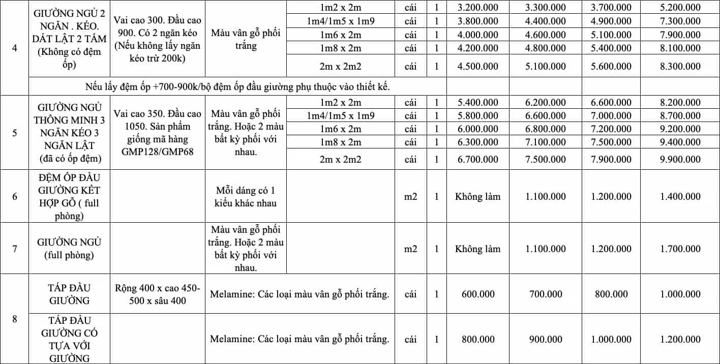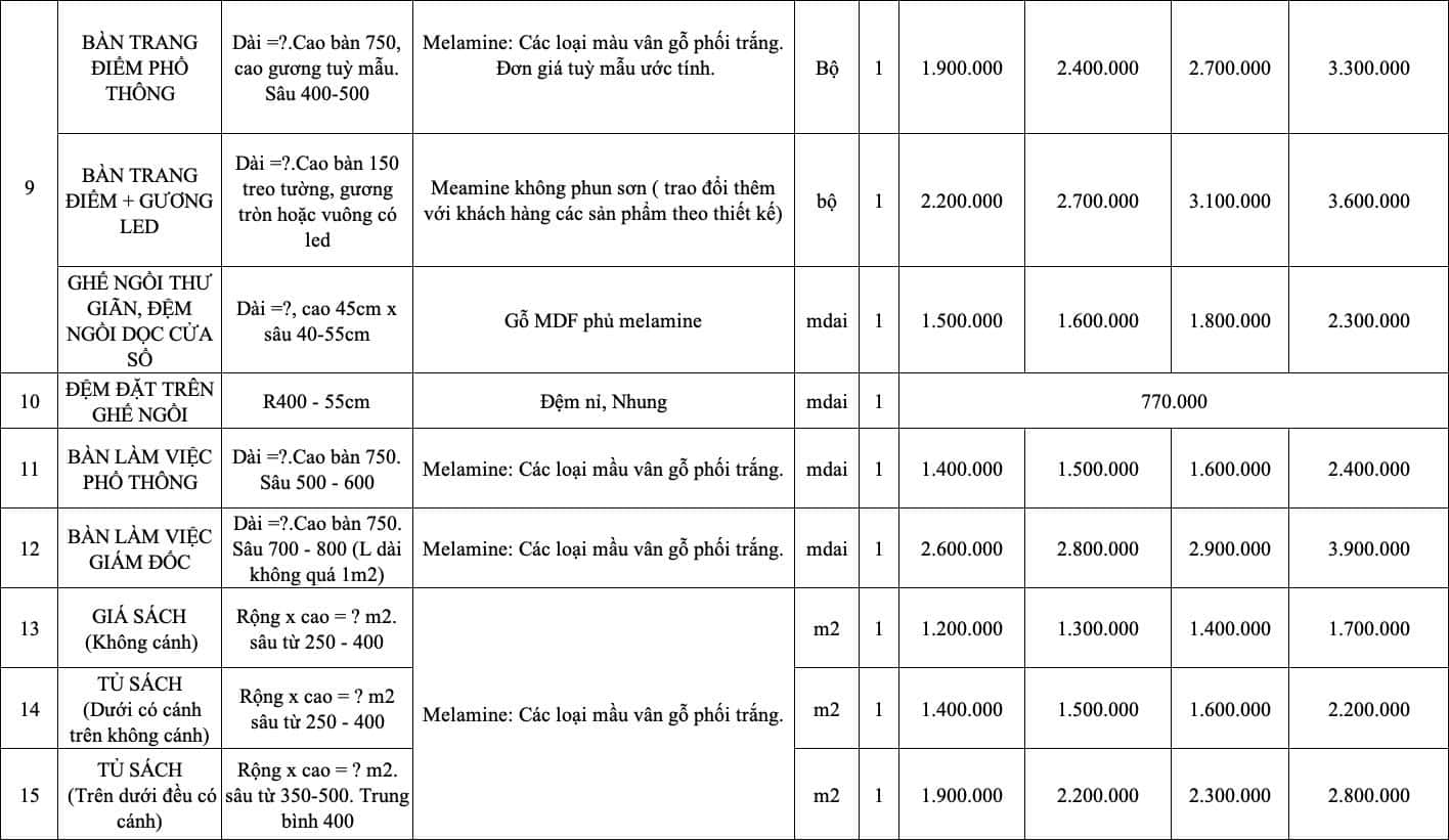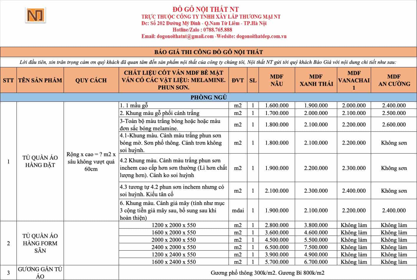 Bảng báo giá thiết kế nội thất tủ bếp :