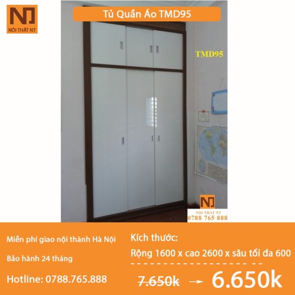 Tủ quần áo gần như là sản phẩm không thể thiếu đối với mỗi người. Nó giúp không gian sống của bạn gọn gàng hơn, là nơi cất giữ những bộ trang phục đẹp đẽ của bạn. Hiện nay trên thị trường có rất nhiều tủ quần áo mẫu mã, chất liệu khác nhau. Nếu bạn còn đang tìm kiếm địa chỉ sản xuất, thiết kế tủ quần áo nào ở Hà Nội uy tín thì hãy tham khảo các mẫu tủ quần áo đẹp gỗ công nghiệp của Đồ gỗ nội thất NT nhé, chúng tôi tin là bạn sẽ hài lòng. Cùng xem mẫu tủ quần áo hiện đại TMD231 nhé.