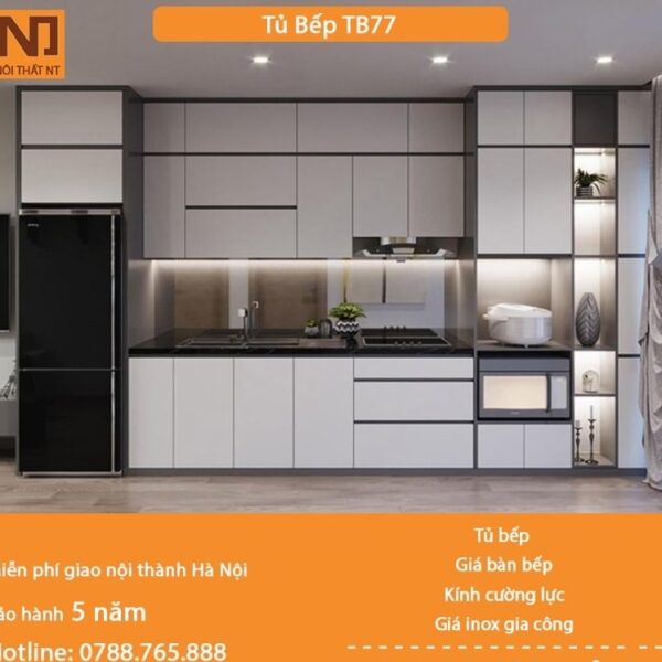 Tủ bếp được xem là thứ không thể thiếu trong những gia đình hiện đại. Trên thị trường hiện nay có rất nhiều mẫu mã tủ đẹp. Bạn không biết chọn tủ nào cho tốt và địa chỉ thiết kế tủ bếp đẹp tại Hà Nội nào uy tín. Hãy đến với Đồ gỗ nội thất thất NT và tham khảo mẫu tủ bếp hiện đại TB48 nhé.