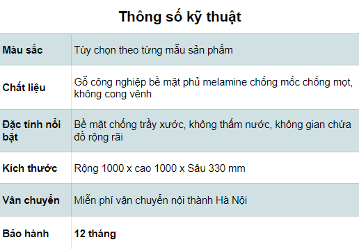 Chất liệu : Gỗ công nghiệp Malaysia phủ melamine chống xước