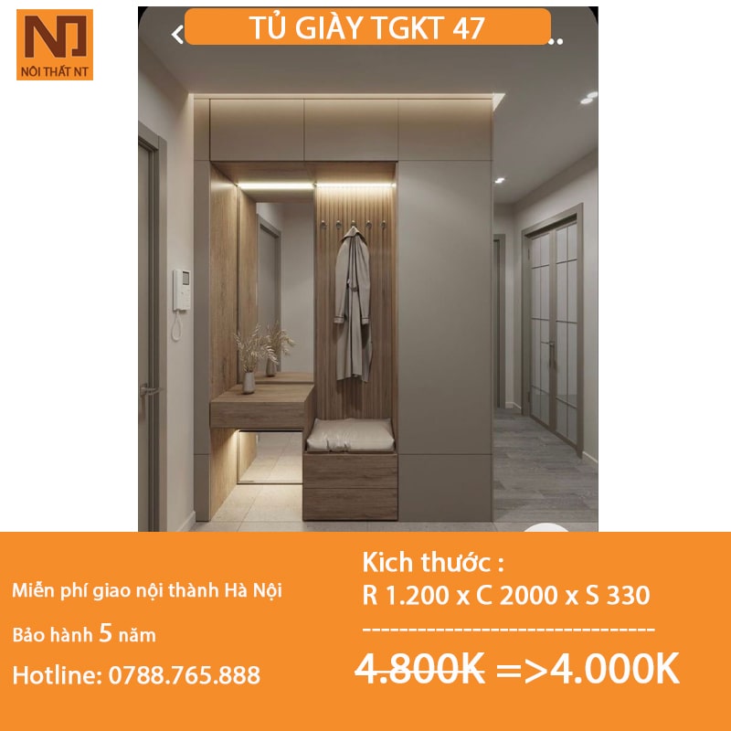 Tại Đồ gỗ nội thất NT chúng tôi chuyên cung cấp các mẫu tủ giày hiện đại, chất liệu gỗ công nghiệp MDF bề mặt phủ melamine cứng chắc, mẫu mã hiện đại, có nhiều kích thước khác nhau để lựa chọn. Bên cạnh đó chúng tôi cũng có nhận đặt đo đóng, thiết kế và thi công theo mẫu mã và kích thước yêu cầu. Sau đây mời bạn tham khảo qua mẫu tủ giày kích trần TGKT47 của Nội thất NT.