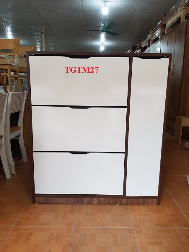Tại Đồ gỗ nội thất NT chúng tôi chuyên cung cấp các mẫu tủ giày hiện đại, chất liệu gỗ công nghiệp MDF bề mặt phủ melamine cứng chắc, mẫu mã hiện đại, có nhiều kích thước khác nhau để lựa chọn. Bên cạnh đó chúng tôi cũng có nhận đặt đo đóng, thiết kế và thi công theo mẫu mã và kích thước yêu cầu. Sau đây mời bạn tham khảo qua mẫu tủ giày thông minh TGTM27 của Nội thất NT.