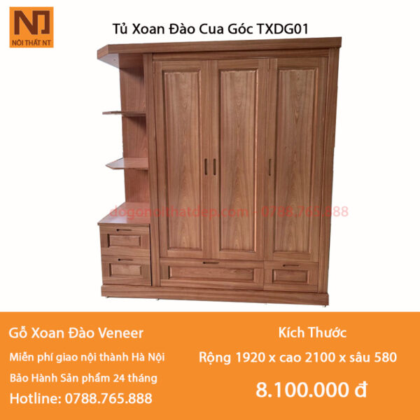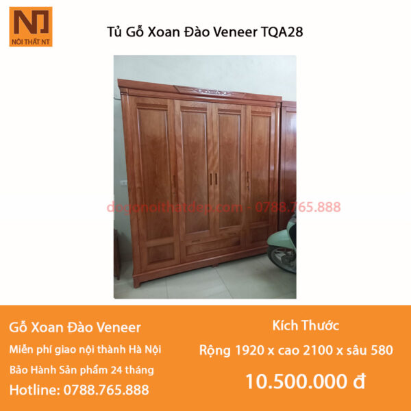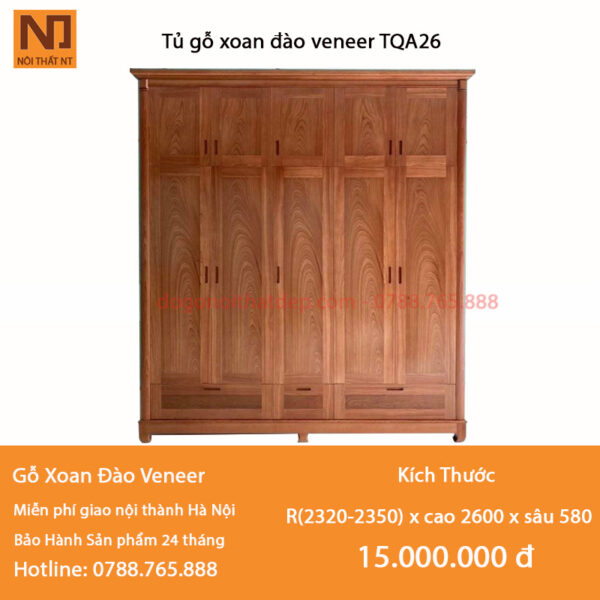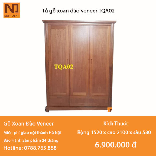 Tủ quần áo gần như là sản phẩm không thể thiếu đối với mỗi người. Nó giúp không gian sống của bạn gọn gàng hơn, là nơi cất giữ những bộ trang phục đẹp đẽ của bạn. Hiện nay trên thị trường có rất nhiều tủ quần áo mẫu mã, chất liệu khác nhau. Nếu bạn còn đang tìm kiếm địa chỉ sản xuất, thiết kế tủ quần áo nào ở Hà Nội uy tín thì hãy tham khảo các mẫu tủ quần áo đẹp gỗ tự nhiên của Đồ gỗ nội thất NT nhé, chúng tôi tin là bạn sẽ hài lòng. Cùng xem mẫu tủ gỗ xoan đào veneer TQA25 nhé.