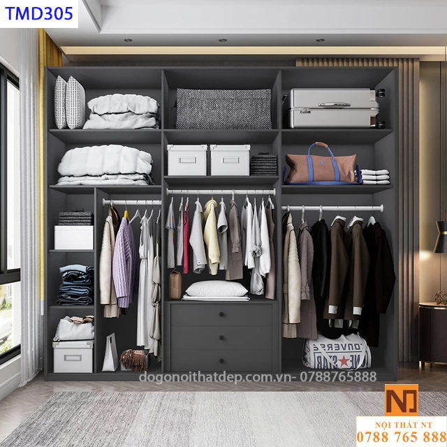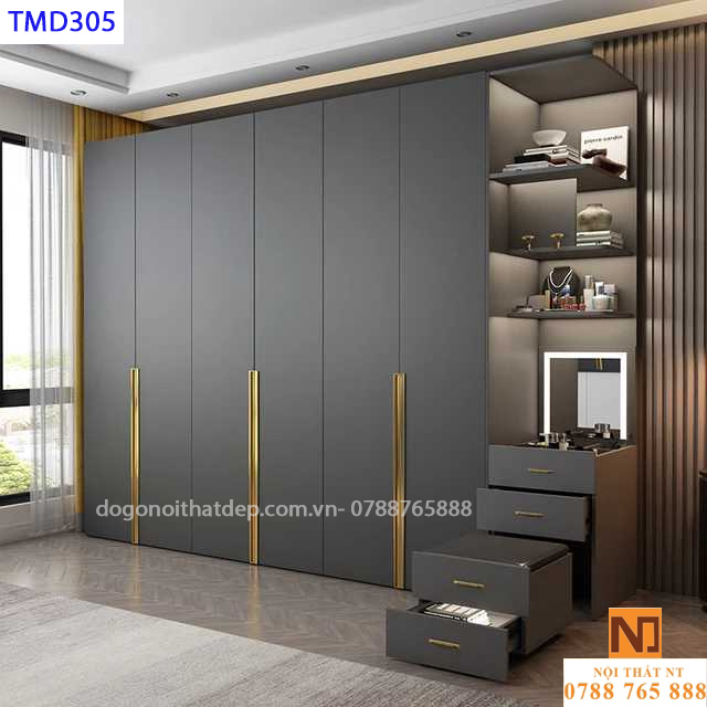 Tủ quần áo gần như là sản phẩm không thể thiếu đối với mỗi người. Nó giúp không gian sống của bạn gọn gàng hơn, là nơi cất giữ những bộ trang phục đẹp đẽ của bạn. Hiện nay trên thị trường có rất nhiều tủ quần áo mẫu mã, chất liệu khác nhau. Nếu bạn còn đang tìm kiếm địa chỉ sản xuất, thiết kế tủ quần áo nào ở Hà Nội uy tín thì hãy tham khảo các mẫu tủ quần áo đẹp gỗ công nghiệp của Đồ gỗ nội thất NT nhé, chúng tôi tin là bạn sẽ hài lòng. Cùng xem mẫu tủ quần áo hiện đại TMD305 nhé.