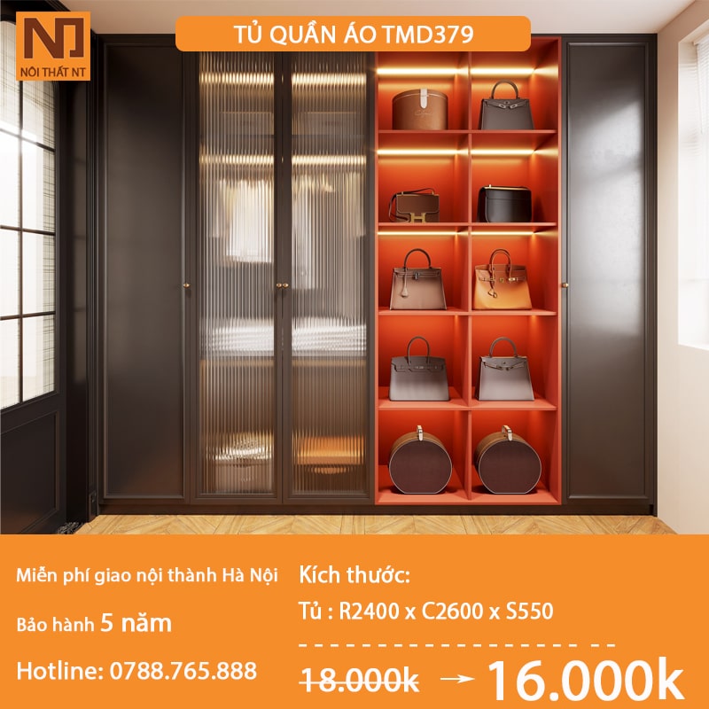 Tủ quần áo gần như là sản phẩm không thể thiếu đối với mỗi người. Nó giúp không gian sống của bạn gọn gàng hơn, là nơi cất giữ những bộ trang phục đẹp đẽ của bạn. Hiện nay trên thị trường có rất nhiều tủ quần áo mẫu mã, chất liệu khác nhau. Nếu bạn còn đang tìm kiếm địa chỉ sản xuất, thiết kế tủ quần áo nào ở Hà Nội uy tín thì hãy tham khảo các mẫu tủ quần áo đẹp gỗ công nghiệp của Đồ gỗ nội thất NT nhé, chúng tôi tin là bạn sẽ hài lòng. Cùng xem mẫu Tủ Quần Áo TMD379 nhé.