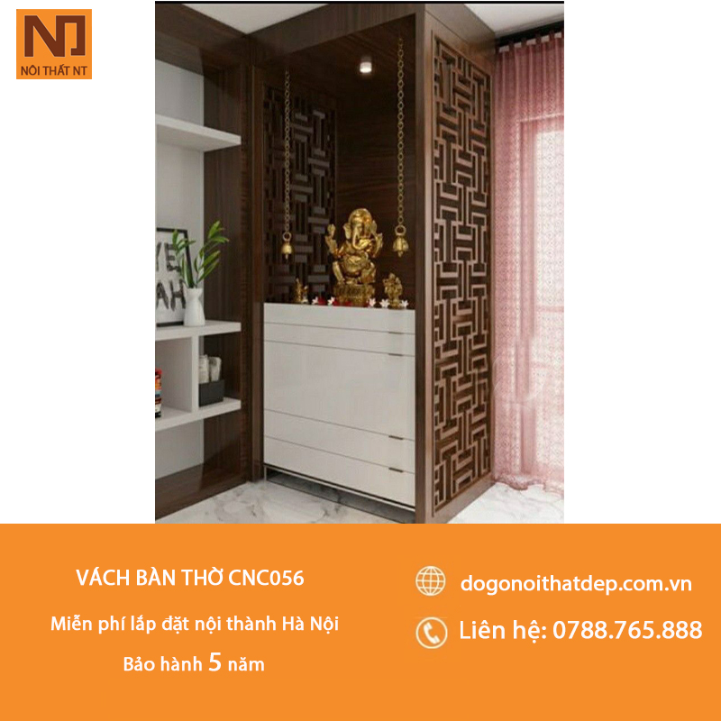 Vách cnc bàn thờ là sản phẩm luôn giữ vị trí trang trọng và thiêng liêng và là nơi thể hiện sự kính trọng và tưởng nhớ tổ tiên. Nếu bạn còn đang tìm kiếm địa chỉ sản xuất, thiết kế vách cnc nào ở Hà Nội uy tín thì hãy tham khảo các mẫu vách cnc bàn thờ của Đồ gỗ nội thất NT nhé, chúng tôi tin là bạn sẽ hài lòng. Cùng xem mẫu vách bàn thờ cnc056 nhé.