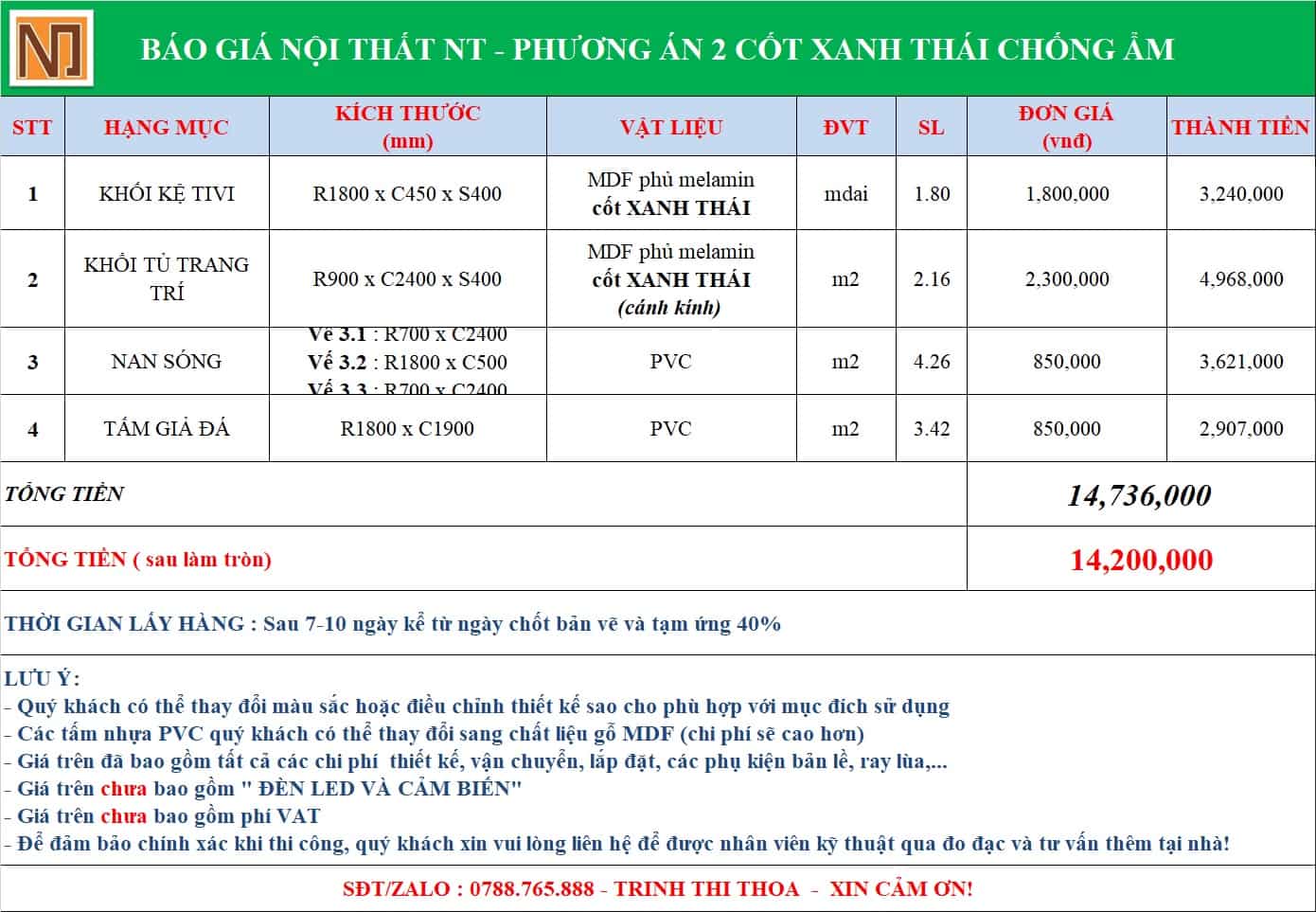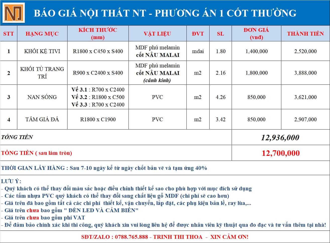 Sau khi thực hiện ốp vách kệ tivi xong, nhân viên Nội Thất NT tiến hành kiểm tra lại một lần nữa. Nếu không có sai xót gì, nhận thanh toán của khách hàng và tư vấn về chính sách bảo hành nếu khách hàng yêu cầu.