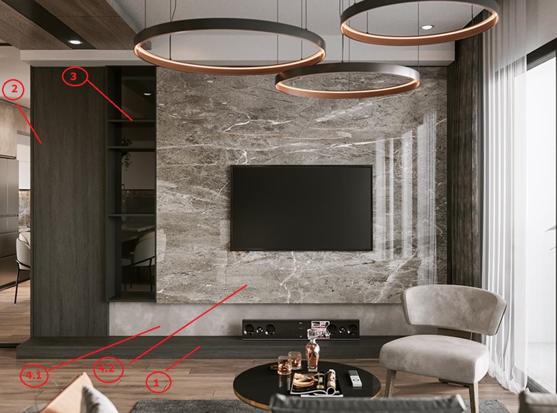 Bước 4 : Thi công ốp vách Tivi theo yêu cầu