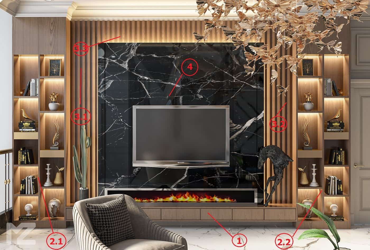 Bước 4 : Thi công ốp vách Tivi theo yêu cầu
