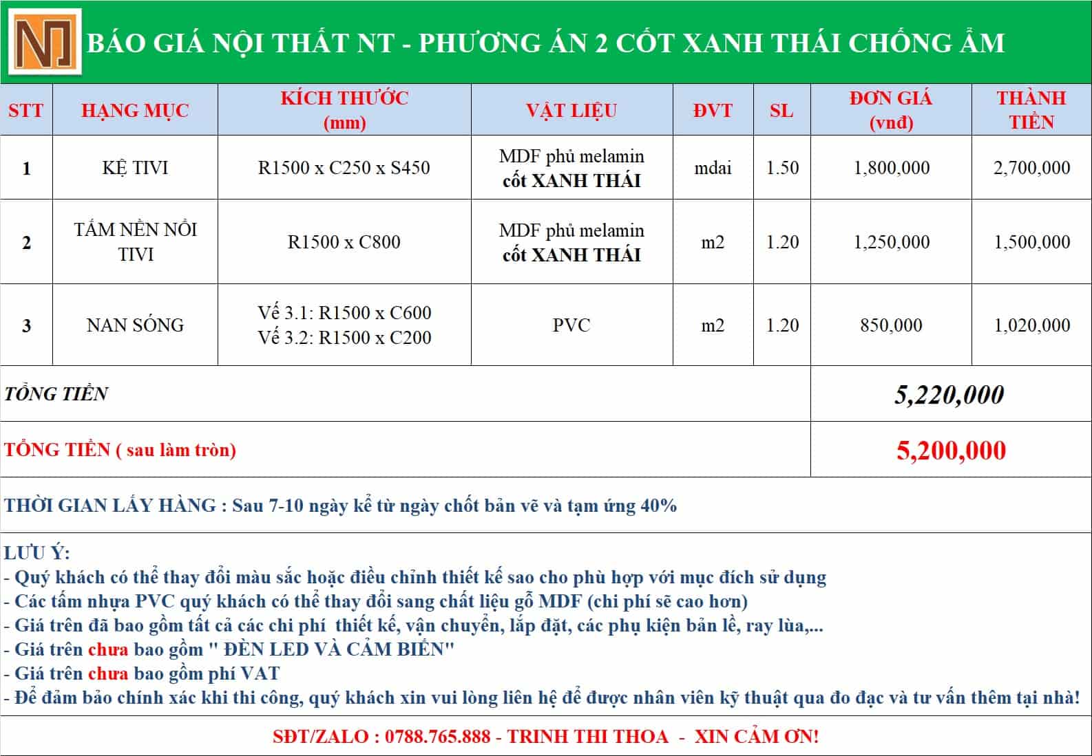 Sau khi thực hiện ốp vách kệ tivi xong, nhân viên Nội Thất NT tiến hành kiểm tra lại một lần nữa. Nếu không có sai xót gì, nhận thanh toán của khách hàng và tư vấn về chính sách bảo hành nếu khách hàng yêu cầu.